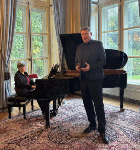 C’était le tour de la pianiste Françoise Tillard qui, accompagnée du baryton Jean-Baptiste Dumora, nous a fait découvrir la musique de la Belle Époque. Elle avait choisi pour le faire des poèmes de Victor Hugo, Jules Renard et Villon, mis en musique par Ravel, De Bussy, Mel Bonis…